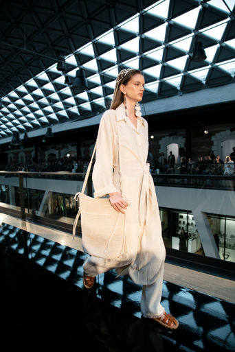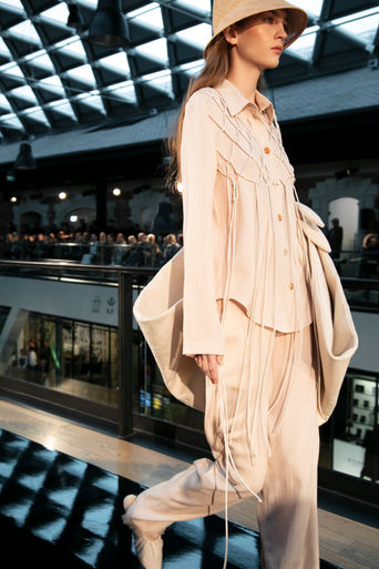 Nanushka, Aeron and Celini opened day 2 with minimal spring summer 2020 collections in beige, browns, tie dye and natural fabrics.